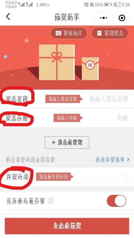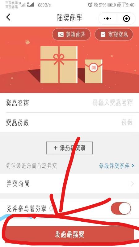 4、全部填写完毕后,点击下方的“发起新抽奖”便可以成功创建抽奖活动了。