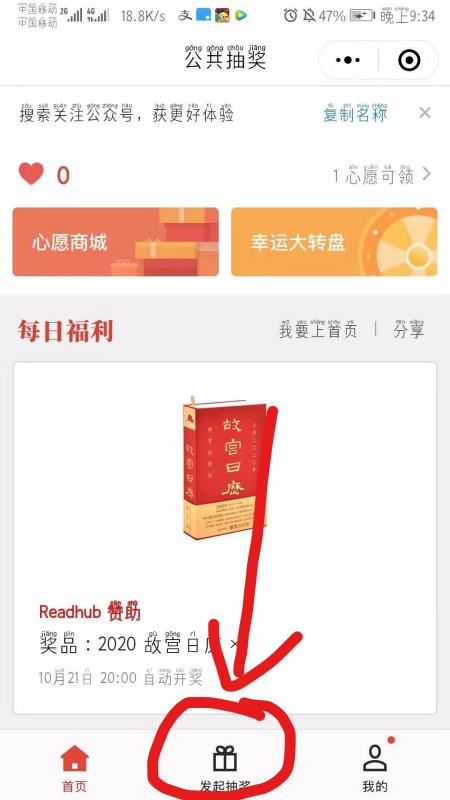2、进入小程序,选择中间的“发起抽奖”,会自动跳转到抽奖创建页面。