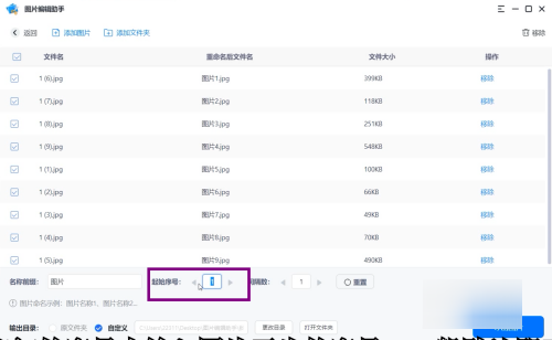 6、在“初始序号”中输入图片开头的序号,一般默认即可。