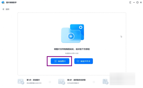 步骤1,下载软件后安装打开,然后点击【添加文件】按钮,将需要重命名的图片文件添加到软件中,也可以直接将图片拖到软件中。