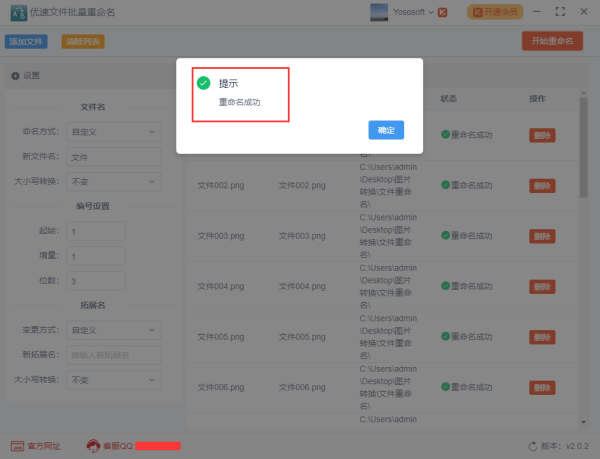 步骤4,当软件弹出“重命名成功”的提示框,说明图片批量重命名成功。