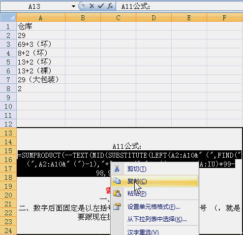 EXCEL在一个单元格内有文字和数字该怎么求和