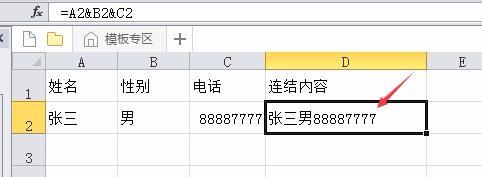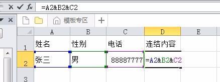 excel中有时需要把多个单元格内容连在一起,假设有姓名(A2)、性别(B2)、电话(C2)等多个单元格,具体操作如下: