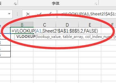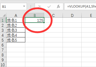2、然后切换到表格1中,在表格1中也输入姓名列,但与表格2的顺序不同,此时在B1单元格中输入提取相同姓名对应的数据的公式:=VLOOKUP(A1,Sheet2!$A$1:$B$5,2,FALSE)。