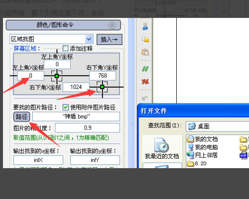 7、在屏幕区域输入你查找目标区域的坐标,点击路径选择需要查找的图片即可。