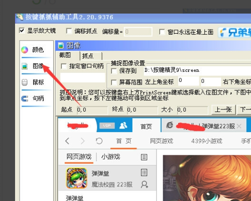 4、回到抓抓辅助工具界面,点击图像,就会出现刚才截的图片,框选要找图的位置,点右键—位图另存为。