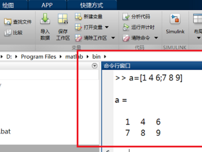 1、第一步打开matlab,命令行窗口输入a=[1 4 6;7 8 9] ,创建矩阵。