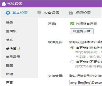 1、打开QQ主面板,点【设置】图标,点【声音】,把【关闭所有声音】前的勾去掉。
