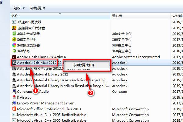 2012,右键单击并单击“卸载/更改”选项,如下图所示,然后进入下一步。