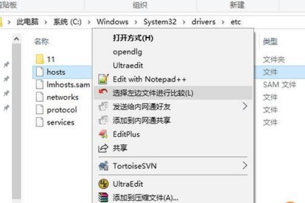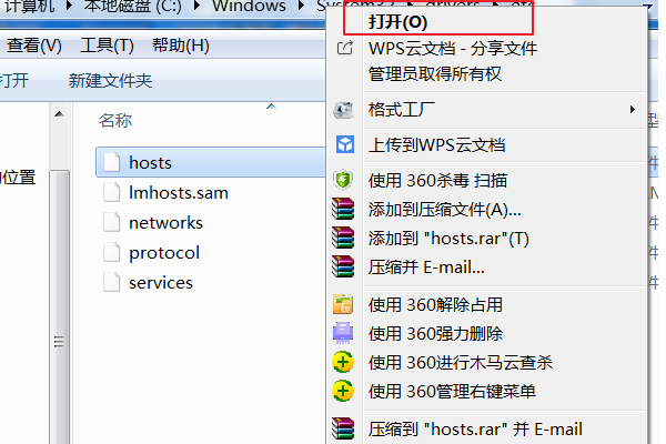 7、找到hosts文件,点击鼠标右键,选择打开。