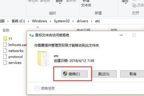 4、编辑好以后在将hosts文件拖入etc目录下面,这时会弹出如下图所示的提示,我们点击继续即可