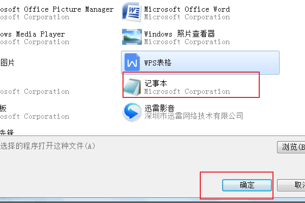8、使用鼠标左键选中记事本,点击下方的确定。