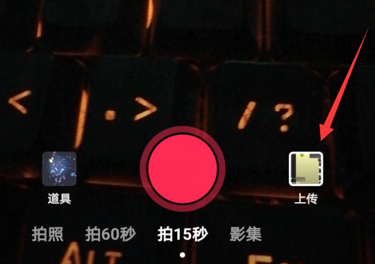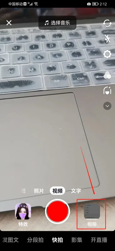 第二步,拍摄视频或者点击右下角的相册选择一个素材,(如下图所示)