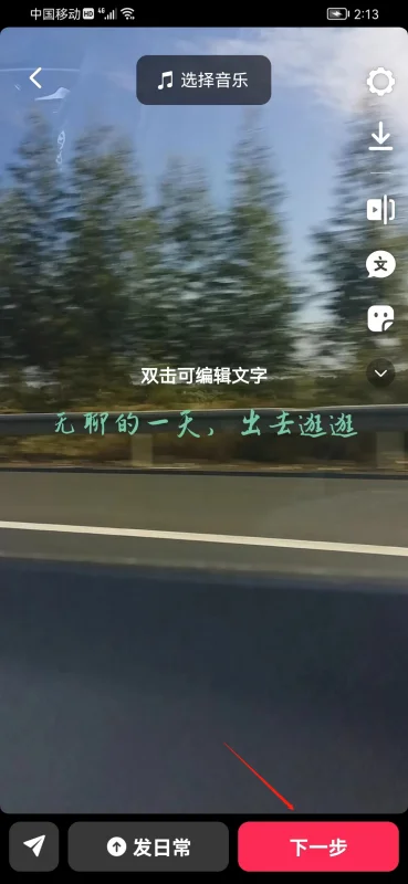 第六步,移动文字到视频上的合适位置,点击下一步去发布视频就可以了。