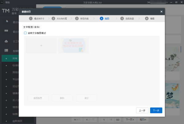 四、装饰配图,这个配图和上一步的配图不一样,上一步的配图是跟着文字走的,而这里的配图是前景装饰,找一些相关图片,添加进来,软件会在作品中循环播放这些图片(可以跳过)