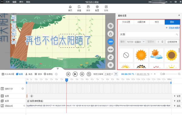 点击完成,一个文字动画视频就自动生成了。还能设置动画特效、插入图标、人物角色等