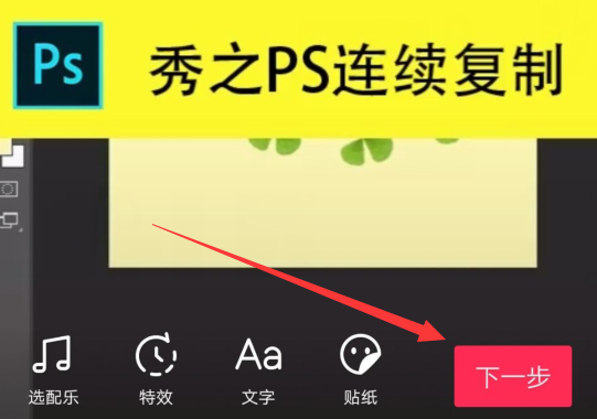 7、打开页面后,可以重新设计下视频,也可以重新选择配乐,设置好后点击页面下方的下一步。
