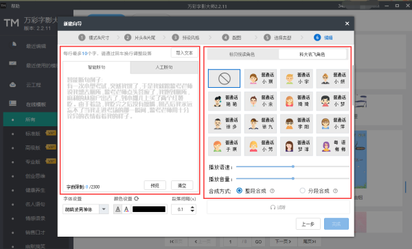 这里小编选第一个,选中后,导入文字。这里有语音合成功能,可以选一位朗读者把文字读出来