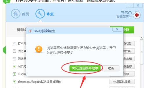 3、修复前需要关闭浏览器,请保存好自己的工作。