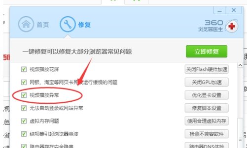 2、然后根据自己的问题情况选择修复的内容,比如笔者的是视频播放问题,点击立即修复。不过,为了更好的解决问题,建议修复全部选项。
