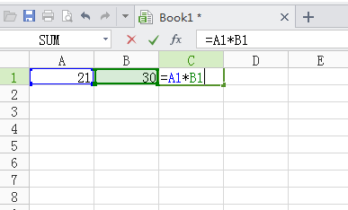 1、在C1框中输入=A1*B1,然后点击回车,即可得到A1与B1的乘积。