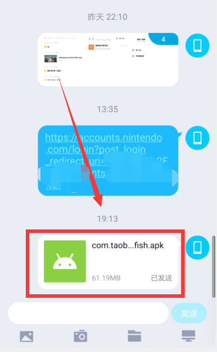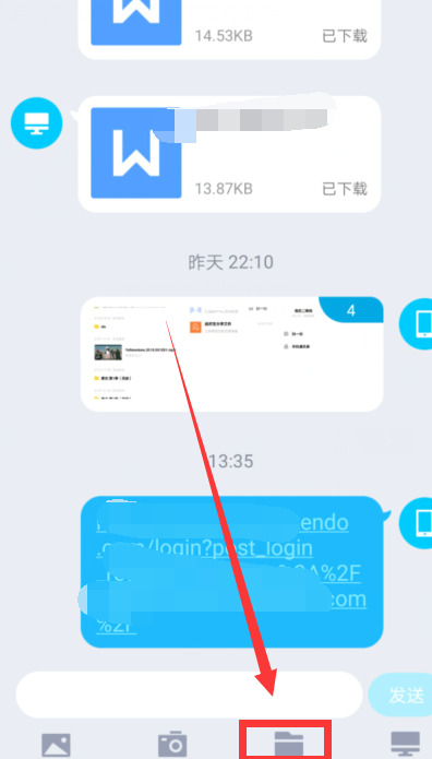 3,打开与电脑的互传文件页面之后,点击下方的文件夹图标,打开文件传输。