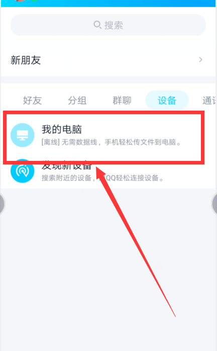 1,首先,打开手机QQ,在“联系人”页面中点击上方的“设备”按钮。