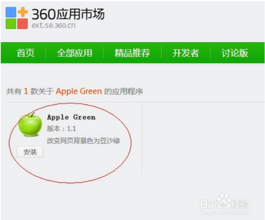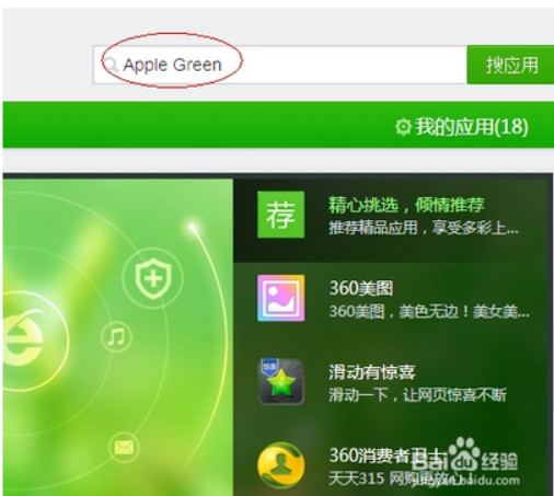 3、在搜应用栏中输入“Apple Green”,点击找应用搜索,如图。