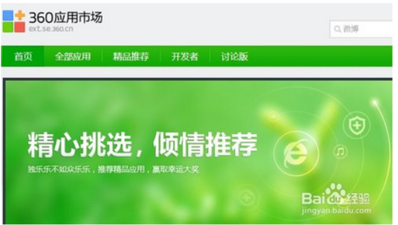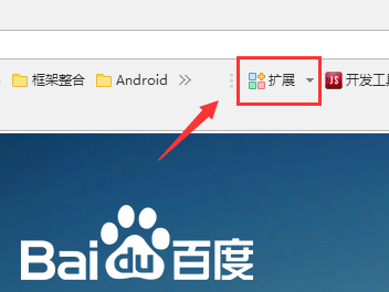 1.首先,打开browser360,如下图所示,在界面右上角的工具栏中选择“extend”选项。