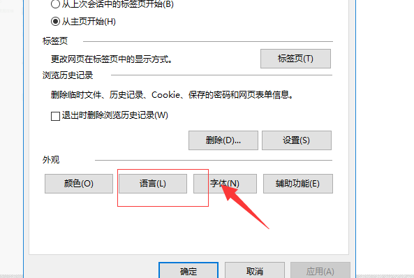 3、在“Internet属性”“常规”选项卡单击“语言(L)”;