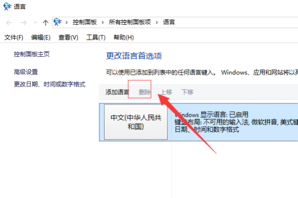 5、只保留中文(简体、中国)将其它语言选中后删除。