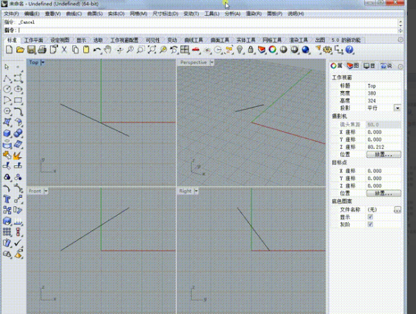 1、先画一条线段。然后点击F10,显示线段的两个控制点,通过拖动控制点,可以改变线段在三维空间的位置关系。