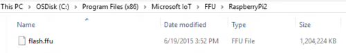 安装 Windows_10_IoT_Core_RPi2.msi。安装完成后,flash.ffu 将位于 C:\Program Files (x86)\Microsoft IoT\FFU\RaspberryPi2