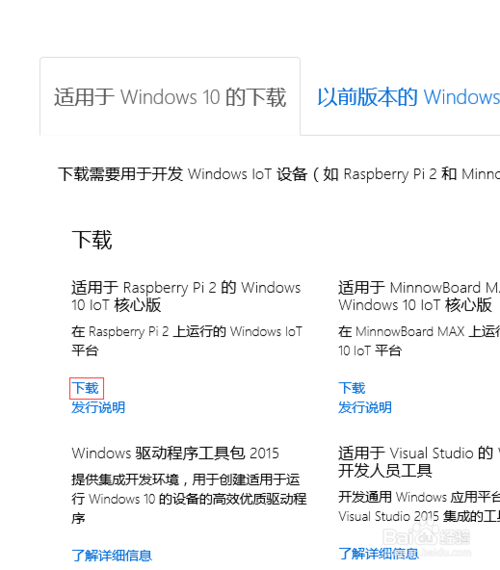 从 Microsoft 下载中心下载用于 Raspberry Pi 2 的 ISO