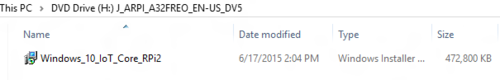 双击 ISO(IoT 核心版 RPi.iso)。它将自动将其本身作为虚拟驱动器进行装载,以便你可以访问内容。