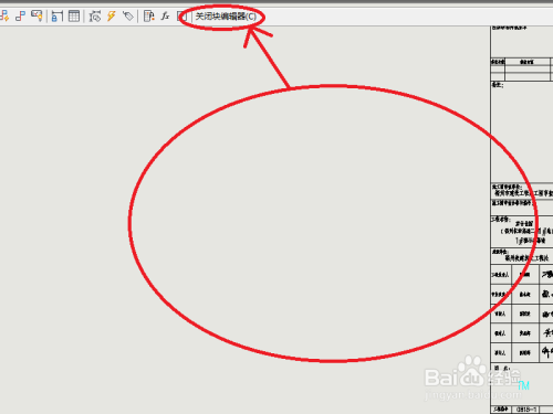弹出块编辑页面,在里面可编辑修改图框内的所有内容,编辑修改完成后在块编辑页面的上方有一个“关闭块编辑(c)”,单击关闭,如图所示: