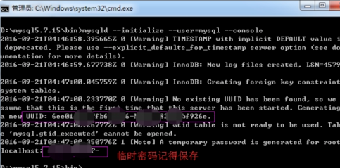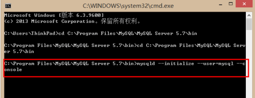 3、接下来,在命令行执行命令:mysqld --initialize --user=mysql --console。