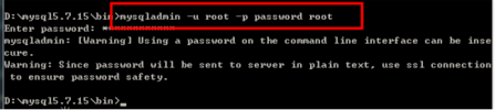 8、修改临时密码,设置密码:mysqladmin -u USER -p password PASSWORD,注意USER和PASSWORD为自己定义的数值。