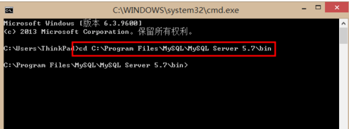 2、启动命令行,将目录切换到mysql安装目录的bin目录下。