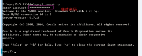 7、输入命令行mysql -uroot -p,利用之前的临时密码输入即可登录数据库成功。