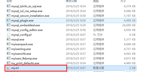 1、找到mysql安装目录,将其配置文件my.default.ini改名为my.ini,并且将my.ini移至bin目录下。