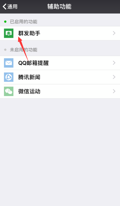 4、在未启用功能下找到【群发助手】,点开它;
