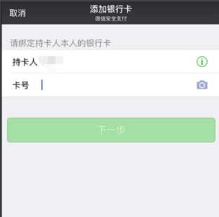 4、根据提示输入银行卡的持卡人姓名和卡号;