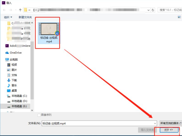 2、选择文件菜单中的打开命令,弹出打开窗口,选择一个比较大的视频文件导入到PR中。
