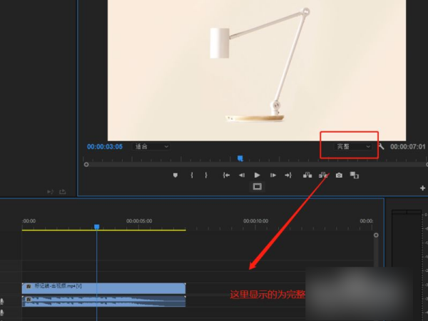 4、在预览播放窗口的下方有一个“选择回放分辨率”,这个选项的显示为完整。