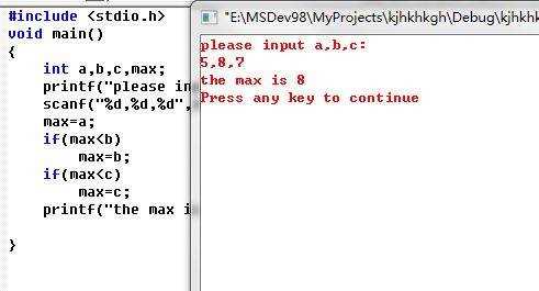 if (x {t=x;x=y;y=t;} if(x {t=z;z=x;x=t;} if(y {t=y;y=z;z=t;} printf("%d %d %d\n",x,y,z); } 扩展资料: 使用三元运算符,这个运算符会使程序进一步简化,而且看起来更加的直观。 它的一般形式如下: 表达式1? 表达式2:表达式3; ? 表达式的值是由 表达式1 决定的。如果 表达式1 为真,则计算表达式2 的值,结果即为整个 ? 表达式的值。如果 表达式1 为假,则计算 表达式3 的值,结果即为整个 ? 表达式的值。 程序如下: #include int main() { int max; int a,b,c; printf("请输入三个数:"); scanf("%d %d %d",11&a,&b,&c); max=a>b?a:b; max=c>max?c:max; printf("Max is %d",max); return 0; } 参考资料来源:百度百科-C语言 相关文章 零基础入门学习什么编程语言比较好如果你想学习编程,虽然选择第一门编程语言与你想用它来做什么最终达到什么目的有很大的关系,但是事实上某些编程语言的确比其他语言要好学。 关于C语言编程 具体见补充。首先指出你程序不合理的地方,n只要输入一次即可,while(scanf("%d%*c",&n)!=EOF)这句改为两行:(你的程序提交上去AC了?有点点怀疑...)) scanf("%d 迷你世界时间限制怎么解除您好,很高兴为您解答。迷你世界解除时间限制的唯一方法就是实名认证,也就是说满18岁才可以取消时间限制哦。希望对你有帮助!【摘要】 迷你世界时间 怎么才能成为一个合格的程序猿?作为一个合格的程序员,首先需要做到以下几点:1,拥有基础的编程算法能力。2,具有较好的编程格式习惯。3,在编程时有耐心,有毅力。程序员是一个比较理 很多人说互联网前景好,那个湖南众智互联网学院的软件开发以后前景好不?好就业不?很多人是互联网的前景非常好湖南众智互联网学院的软件开发以后的前景是很多人说互联网的前景非 西门子数控车床808d如何编程?一、以N95这个循环程序为例:程序步骤: 信息技术学业水平考试步骤错了会不会影响成绩?不会,这种考试一是看你的最终结果,最终结果相同应该就能获得分数,步骤错了也分步骤顺序错了和步骤的具体操作错了,顺序错了不会有影 学习编程,用什么编程软件?C语言编译器可以分为两类,一是桌面操作系统,二是嵌入式系统。桌面操作系统包括:Visual C++、GCC 以及 LLVM Clang ,Visual C++只能用于 Windows 操作系 请问:核桃编程的课 程是 启蒙类的 吗?也算是吧,针 对的是7-15岁的孩子的编程的启蒙教育, 同时针对不同孩子的情况,也有拔高课程,比如Python和C++, 所以孩子刚学的时候肯定是从基础