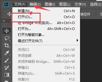 1、首先在PS2019中,在文件栏中,选择打开命令栏,如下图所示。