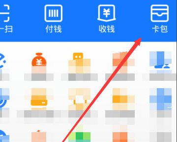 1、首先在手机中,进入支付宝首页点击右上角的【卡包】按钮,如下图所示。
