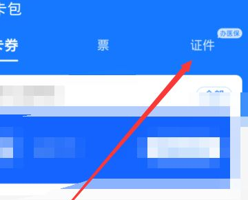 2、进入卡包后,点击右侧证件选项选择【健康码】。