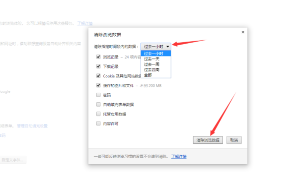 3、选择需要清理时间段数据和需要清楚的数据,点击清除就可以